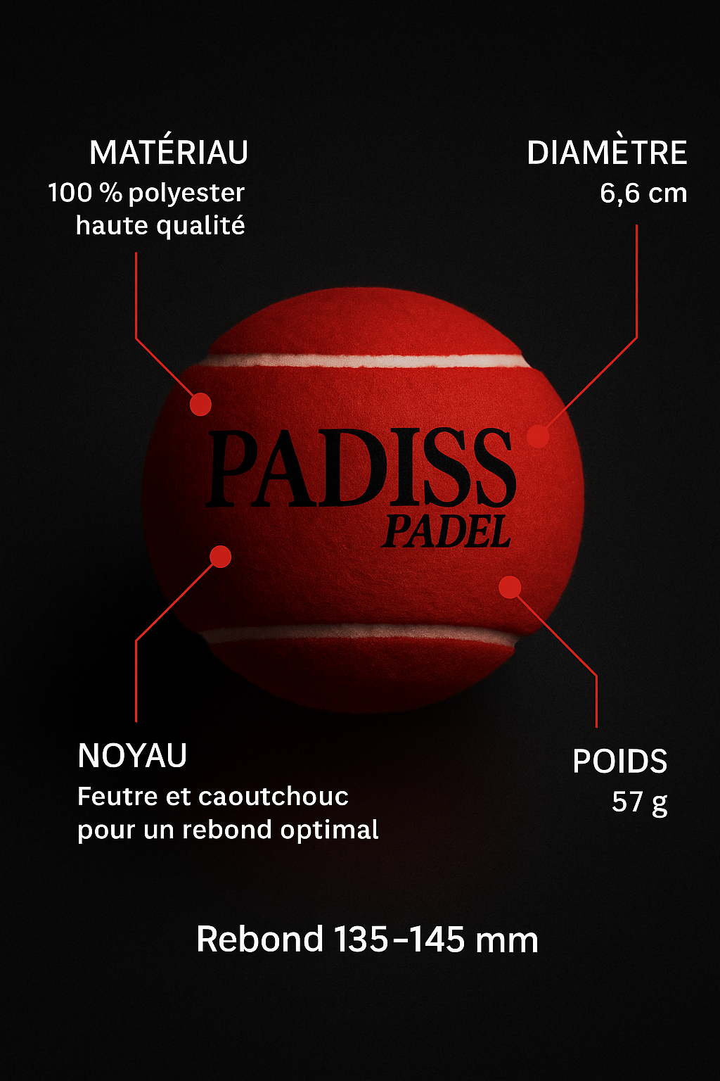 - Tube pressurisé de 3 balles de Padel.